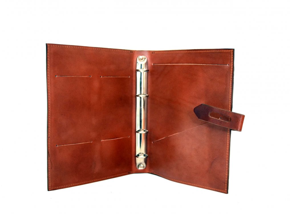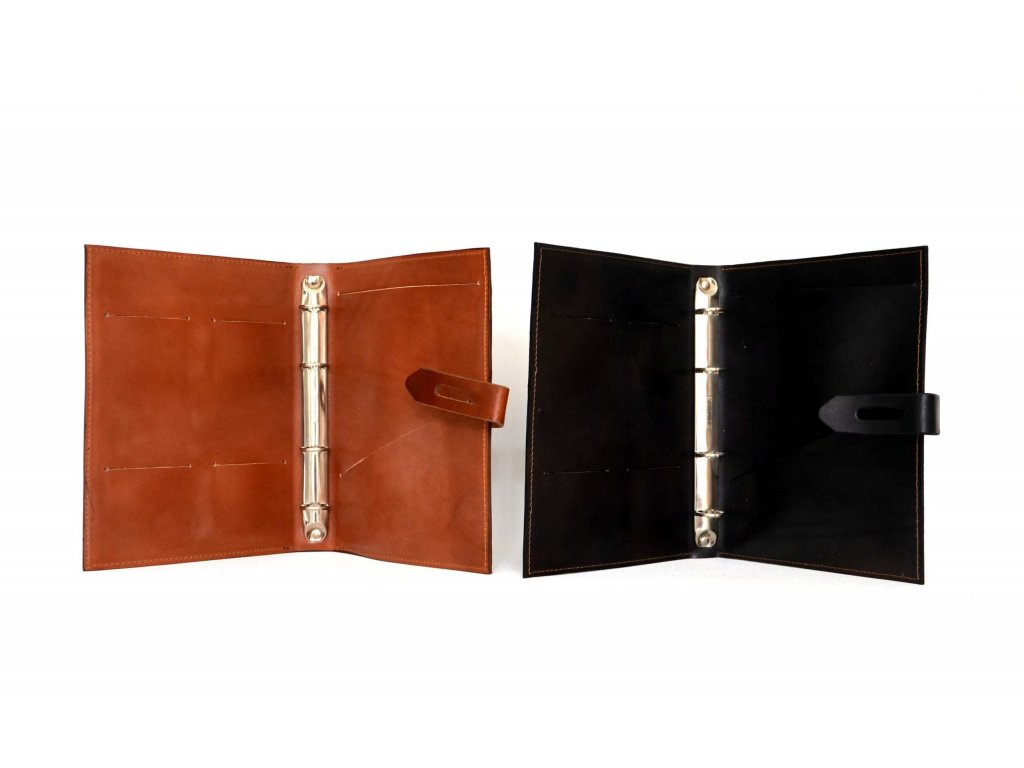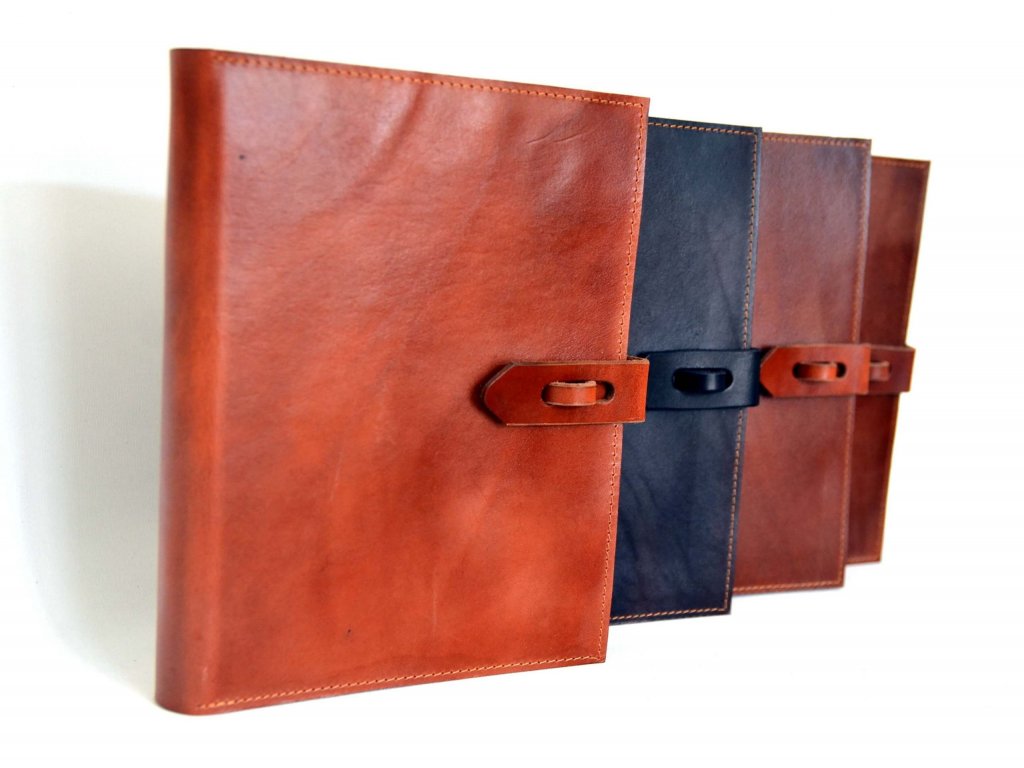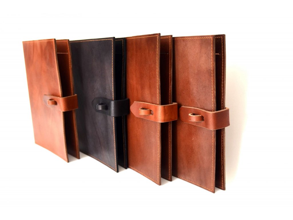 Desky jsou z kusu hovězí třísločiněné kůže, ručně barvené.
